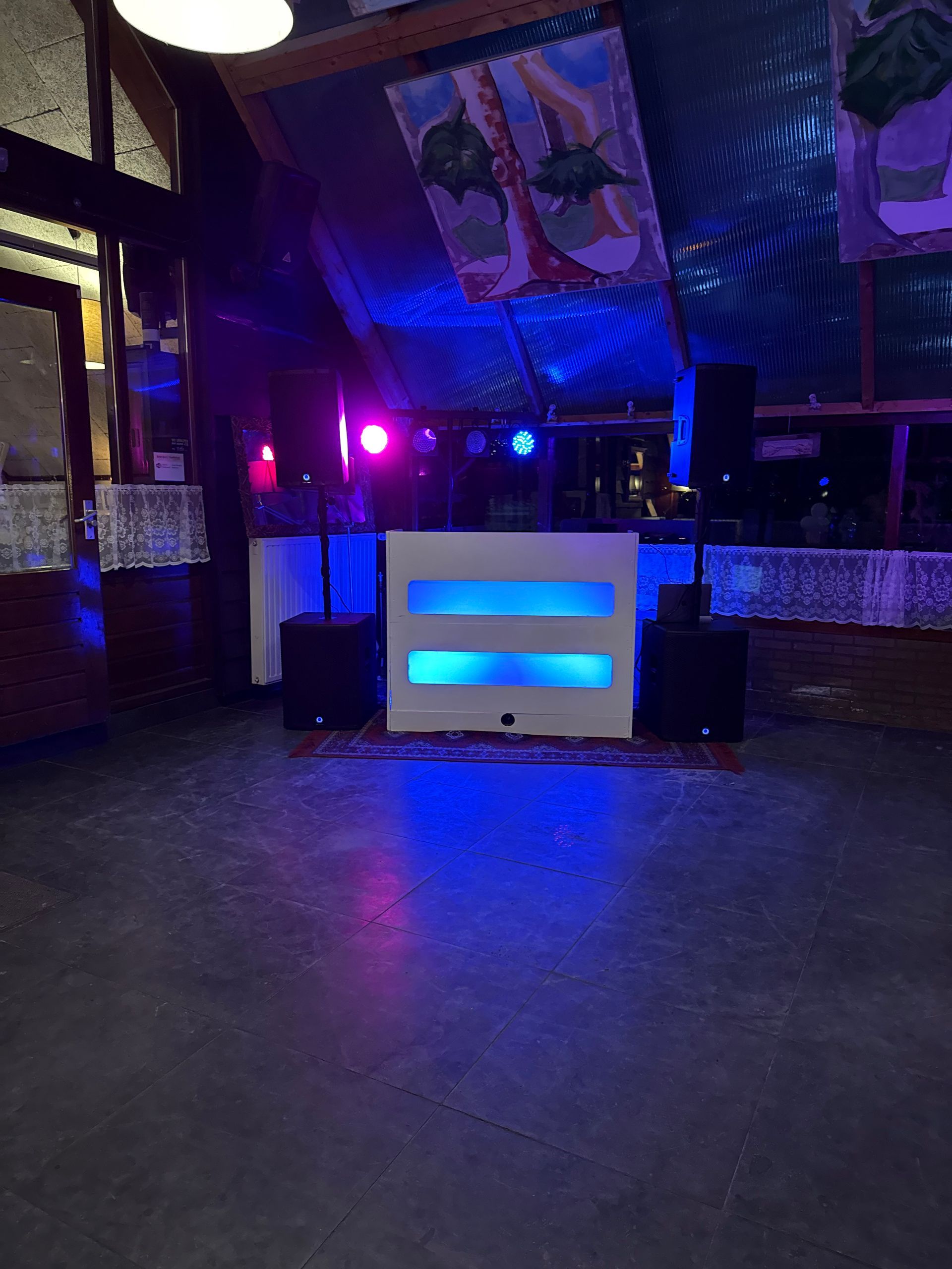 De DJ-set bestaat uit een nette, compacte DJ-booth met professioneel geluid en sfeervolle verlichting. Alles is subtiel afgestemd zodat de techniek nooit overheerst, maar juist bijdraagt aan de warme en romantische sfeer van jullie grote dag. Ideaal voor kleinere zalen, cafés of feestlocaties waar kwaliteit belangrijker is dan grootte.