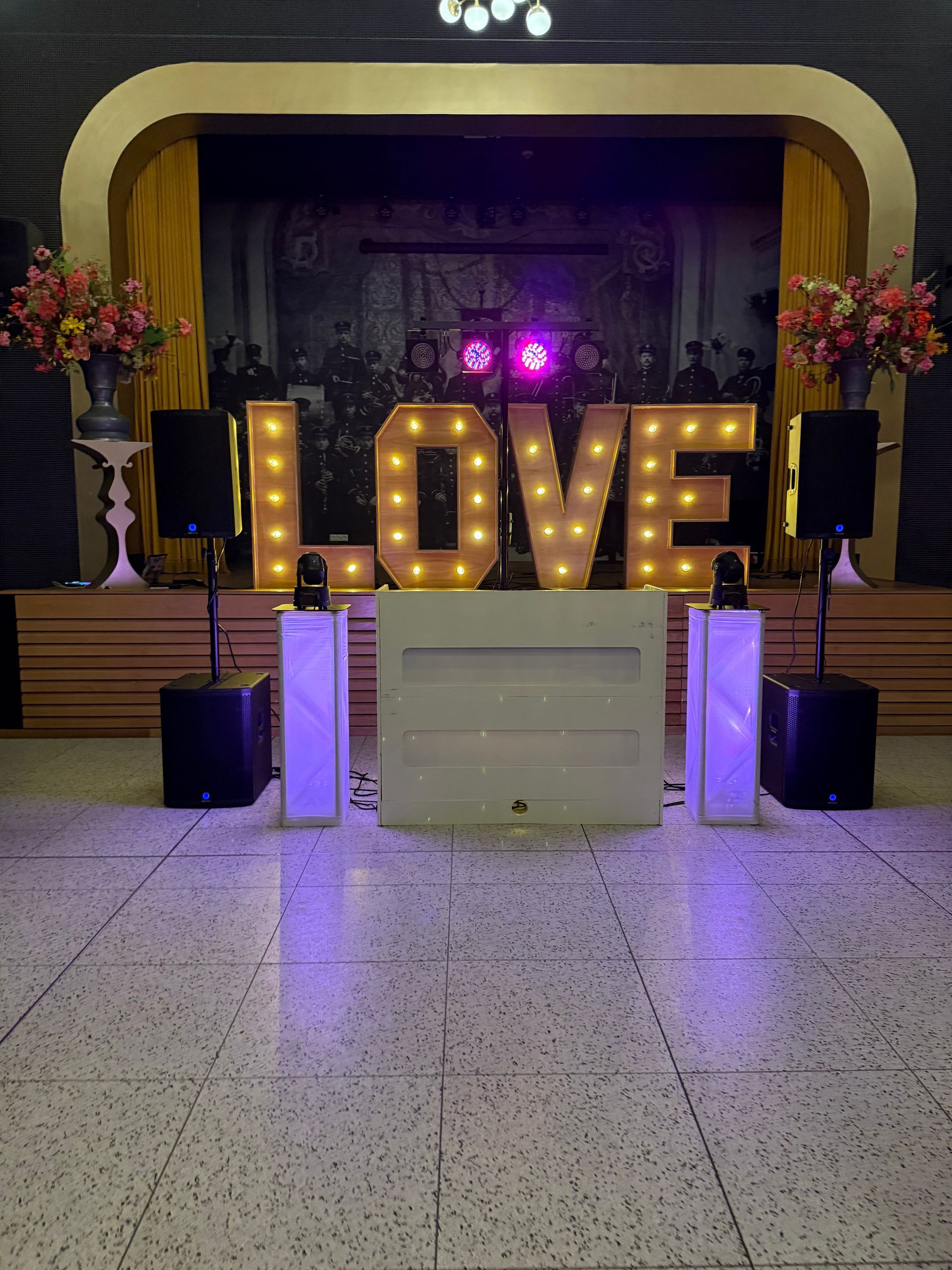 Naast een krachtiger geluidsinstallatie wordt deze set uitgebreid met verlichte pilaren (totems) voorzien van moving heads. Dit zorgt voor dynamische lichteffecten die perfect meegaan met de muziek en het feest echt tot leven brengen. Ideaal voor grotere zalen en bruidsparen die een energieke dansvloer willen.